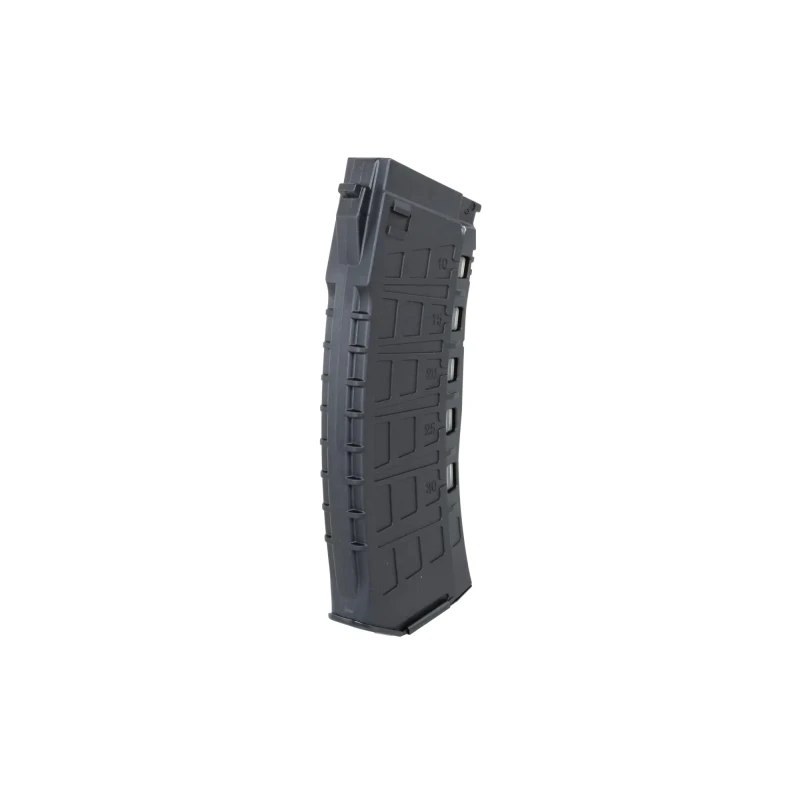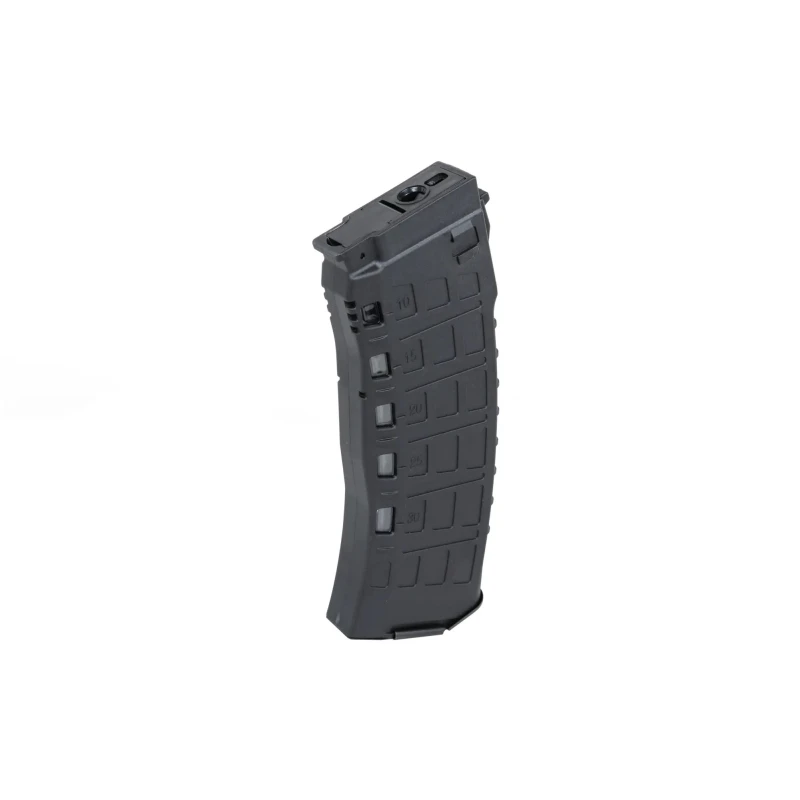 Dieses hochwertige Mid-Cap-Magazin von Arcturus ist für AKM-, AK74- und AK12-Repliken (AK-Serie) konzipiert. Das verstärkte Polymergehäuse mit realistischer Optik bietet hervorragende Schlagfestigkeit und Langlebigkeit. Das Magazin ist mit einem modularen Innensystem (EMM) ausgestattet, das eine einfache Wartung und Reinigung ermöglicht. Ein weiterer Vorteil ist der schnelle Austausch der Außenhülle gegen optionale Varianten.