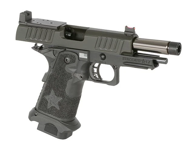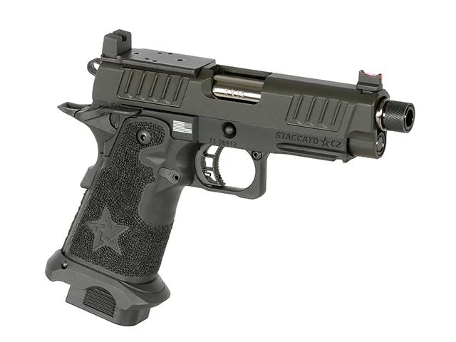 Die STACCATO 2011 C2 ist eine Replik einer Pistole, die auf der 1911-Plattform basiert und unter der Lizenz von EMG erhältlich ist. Ziel war es, ein Modell zu schaffen, das die Anforderungen von Kunden erfüllt, die eine zuverlässige, präzise und langlebige Pistole für den Einsatz suchen. Die STACCATO 2011 C2 überzeugt mit Reichweite, einfacher Bedienung – für Links- und Rechtshänder – sowie einem eleganten Design mit präziser Verarbeitung. Die verbesserte Version enthält zudem Stahlkomponenten und Bauteile des renommierten Herstellers T8.