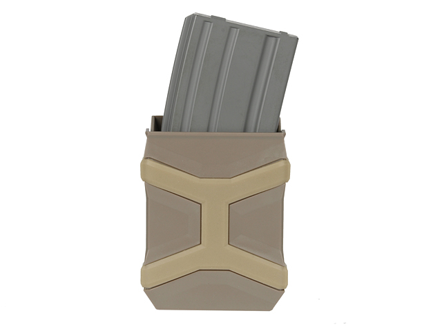 Einfache Magazinauswurfmechanik für schnellere Magazinwechsel. Einstellbare Spannung durch Gummibänder für Kompatibilität mit vielen 5,56-mm-Magazinen. Kompatibel mit Gürteln bis zu 40 mm Breite.