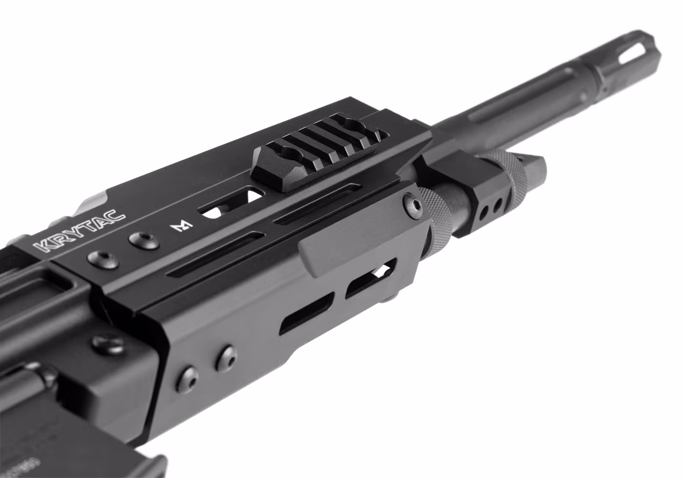Das Trident LMG-M von Krytac ist eine Weiterentwicklung der äußerst erfolgreichen und bekannten AR-15/LMG-Hybridreplika – eine elegante und zugleich vielseitige Kombination in einem kompakten und leichten Paket. Im Vergleich zu den Vorgängermodellen ersetzt das -MP-Modell die Keymod-Slots durch das gängigere M-LOK-Schnittstellensystem und bietet zahlreiche Verbesserungen am Getriebe und den verwendeten Komponenten. Es ist als „Para“-Modell konzipiert und somit der „kleinere Bruder“ der Trident in Originalgröße, da der Fokus im Feldeinsatz stärker auf Manövrierfähigkeit als auf roher Gewalt und Sperrfeuer liegt.