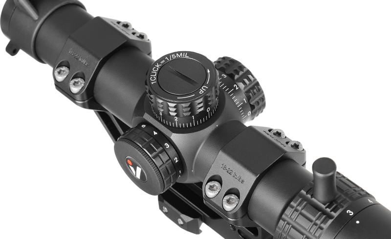 Taktische Low-Profile-Verriegelungstürme mit TLS ermöglichen schnelle und präzise Einstellungen, ohne dass Sie sich Gedanken über versehentliche Änderungen während der Handhabung machen müssen.