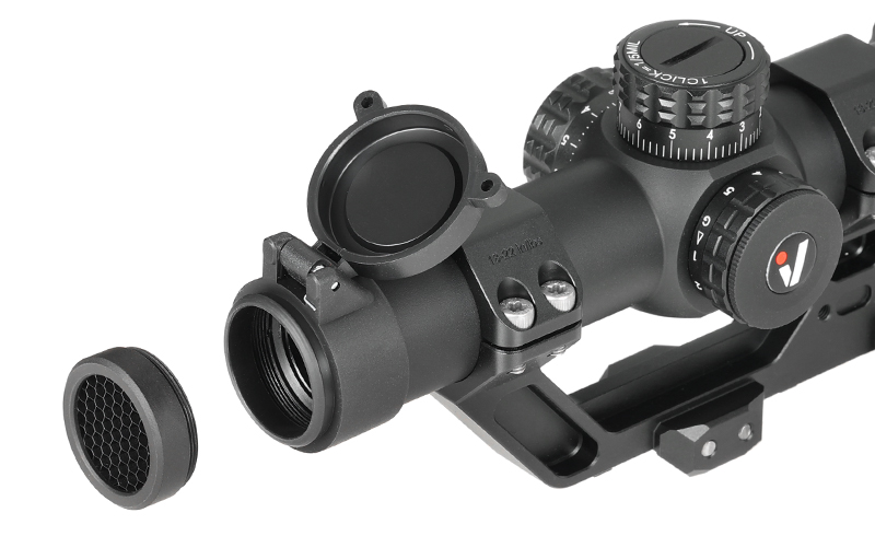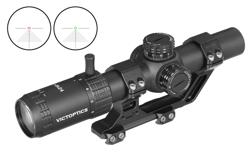 Das leistungsstarke LPVO-Zielfernrohr S6 1-6x24 des renommierten Unternehmens VictOptics, einer Tochtergesellschaft von Vector Optics, verfügt über ein beleuchtetes VI-CTSIX MIL-Fadenkreuz, das auch bei starker Sonneneinstrahlung verwendet werden kann. Es bietet außerdem 5 Stufen roter und grüner Beleuchtung und ist somit vielseitig bei schlechten Lichtverhältnissen einsetzbar. Die Beleuchtung wird mit einer handelsüblichen CR2032-Batterie betrieben.