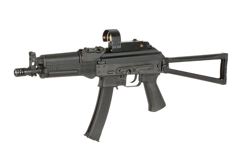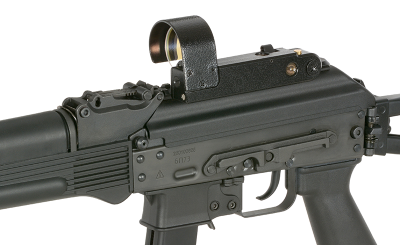 Das verwendete Rotpunktvisier bietet einen klaren Zielpunkt und ermöglicht die schnelle Zielerfassung. Die offene Bauweise verbessert das Situationsbewusstsein und erleichtert den effektiven Einsatz in dynamischen Szenarien. Das einfache Design gewährleistet hohe Langlebigkeit und einfache Bedienung – ganz im Sinne der Designphilosophie dieser Visierart.