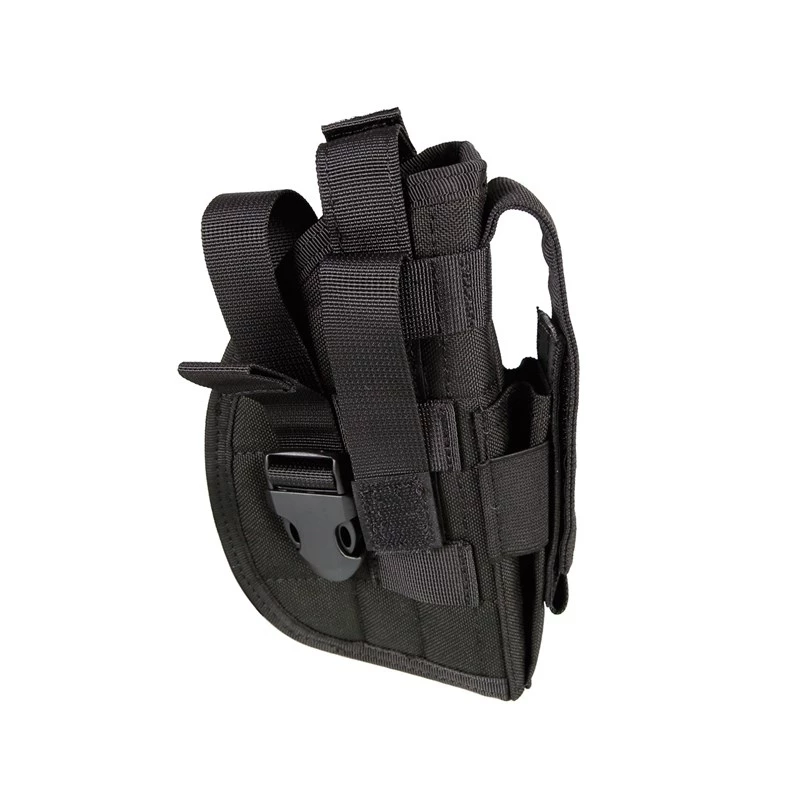 Vielseitiges Molle-Pistolenholster. Gefertigt aus strapazierfähigem 1000D Oxford-Gewebe. Das Holster verfügt über eine Magazintasche mit Klettverschluss.